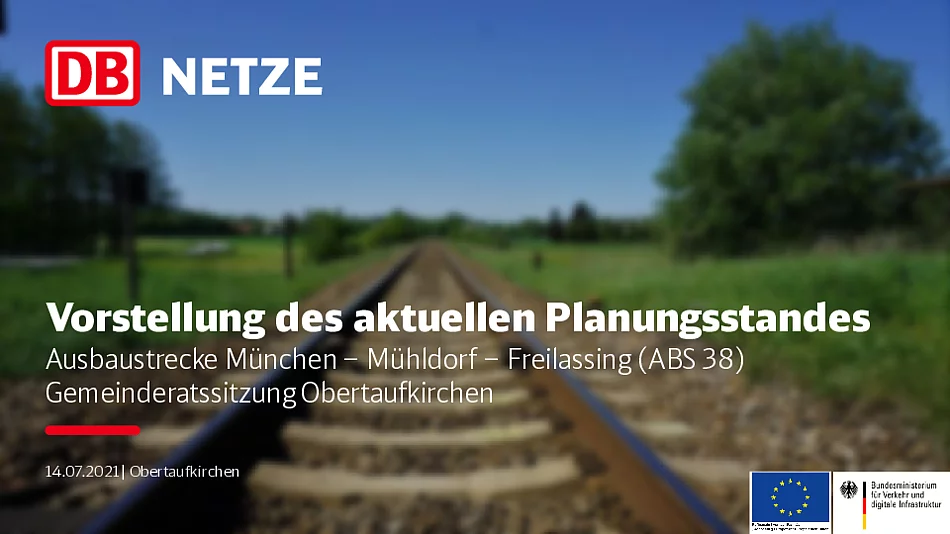In der Gemeinderatssitzung vom 14. Juli 2021 wurde der Planungsstand zum Bahnausbau ABS 38 München - Mühldorf - Freilassing durch die DB Netz AG vorgestellt.